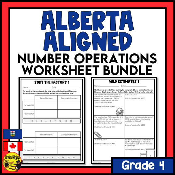 Alberta Math Curriculum Number Operations Worksheets Bundle | Paper | Grade 4