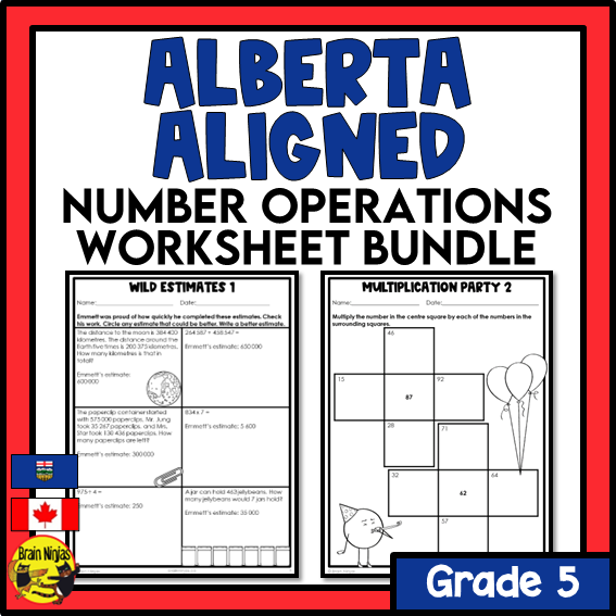 Alberta Math Curriculum Number Operations Worksheets Bundle | Paper | Grade 5