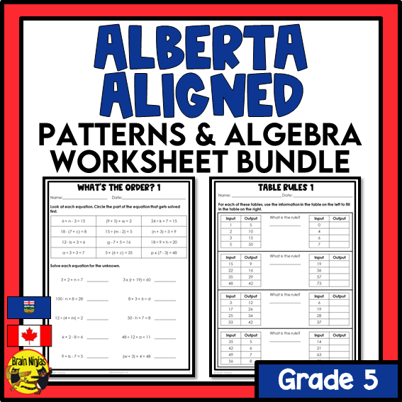 Alberta Math Curriculum Patterns and Algebra Worksheets Bundle | Paper | Grade 5