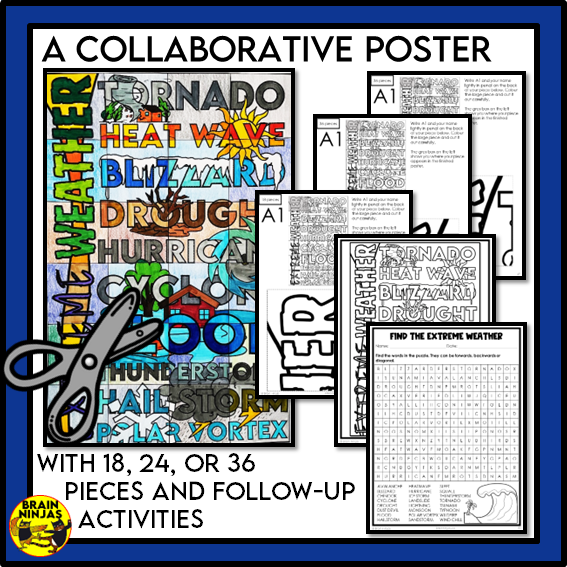 - Extreme Weather Collaborative Poster: extreme weather vocabulary: tornado, heat wave, blizzard, drought, hurricane, cyclone, flood, thunderstorm, hailstorm, polar vortex and more.