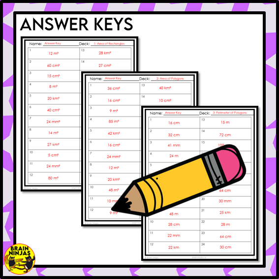 - metric measurements: mm, cm, m, km, mm², cm², m², and km². Your students can still use these cards by ignoring the measurements and focusing on the numbers (or using the word "units").