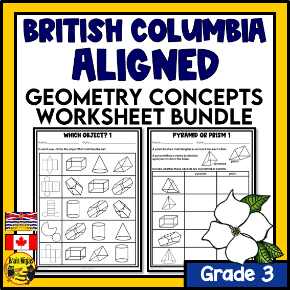 British Columbia Aligned Geometry Math Worksheets Bundle | Paper | Grade 3