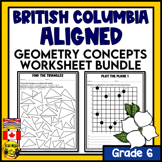 British Columbia Aligned Geometry Math Worksheets Bundle | Paper | Grade 6