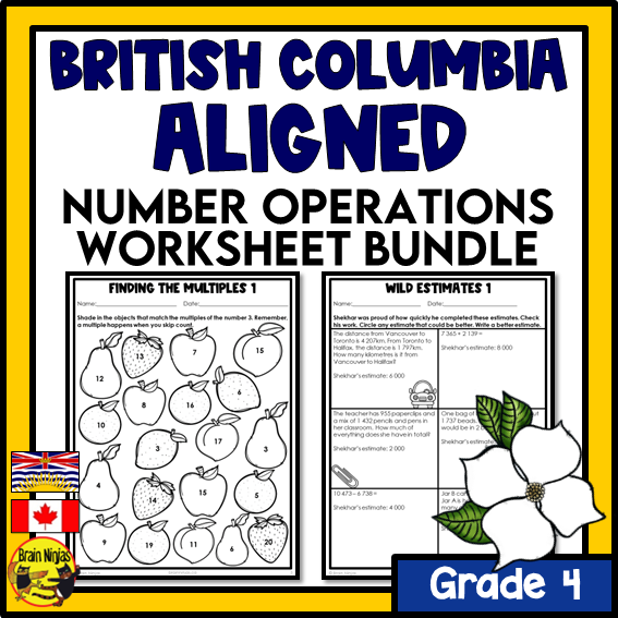 British Columbia Aligned Number Operations Math Worksheets Bundle | Paper | Grade 4