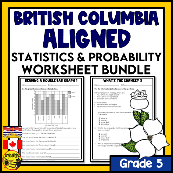 British Columbia Aligned Statistics and Probability Math Worksheets Bundle | Paper | Grade 5