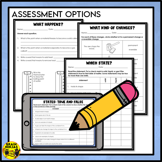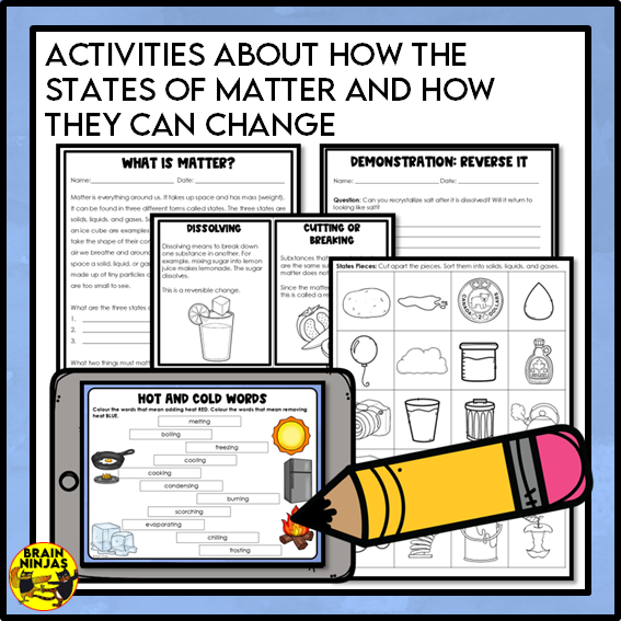 Students will learn about the changes that affect matter when heated or cooled. They will examine which changes are permanent and which are reversible. Best of all, you don't have to plan anything because we did it for you!
