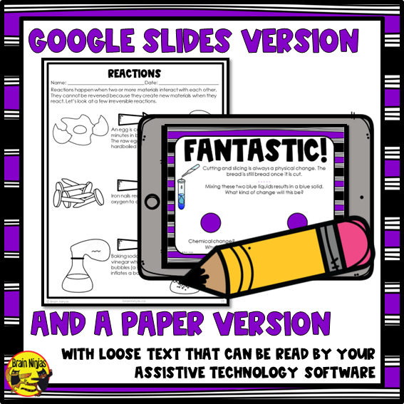 Learn the difference between reversible and irreversible changes along with physical and chemical reactions with these no-prep lessons, activities, and assessments. Everything you need is included and it will only take you moments to prep.