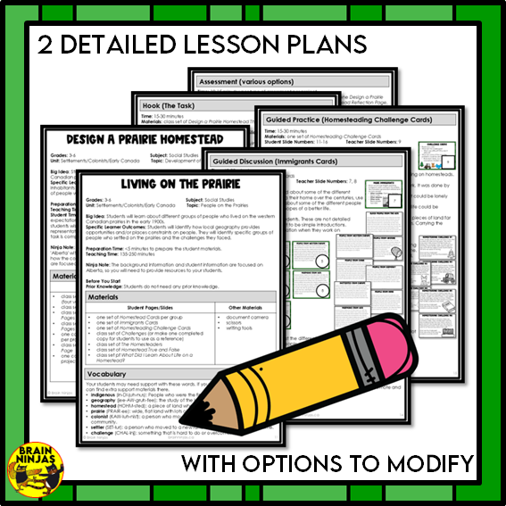 - any lesson covering early settlements in the west or Canadian prairies.