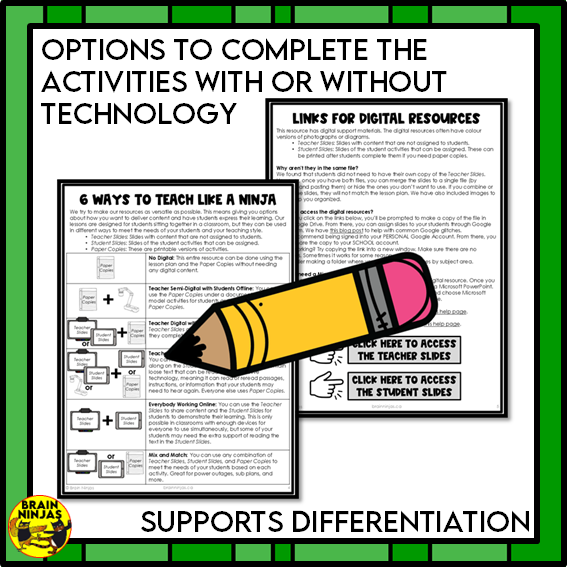 - instructions for how to use our activities with and without technology so you can be flexible for your students and classroom environment.
