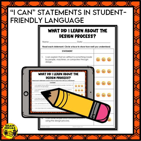 - "I can" statements in student-friendly language and format for students to self-assess their learning.