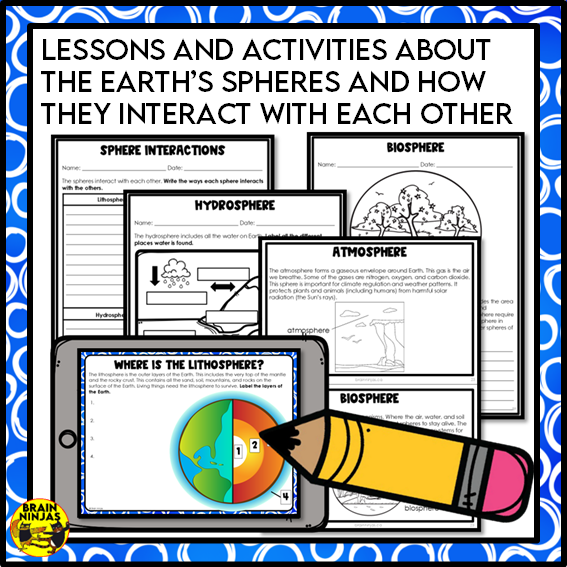 Teach students about the Earth's spheres: lithosphere (geosphere), atmosphere, hydrosphere and biospheres. Learn about the interactions between the spheres and how organisms interact with each other. The best part of this resource is that you can plan, print and use it in minutes.