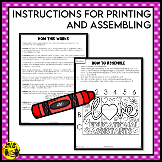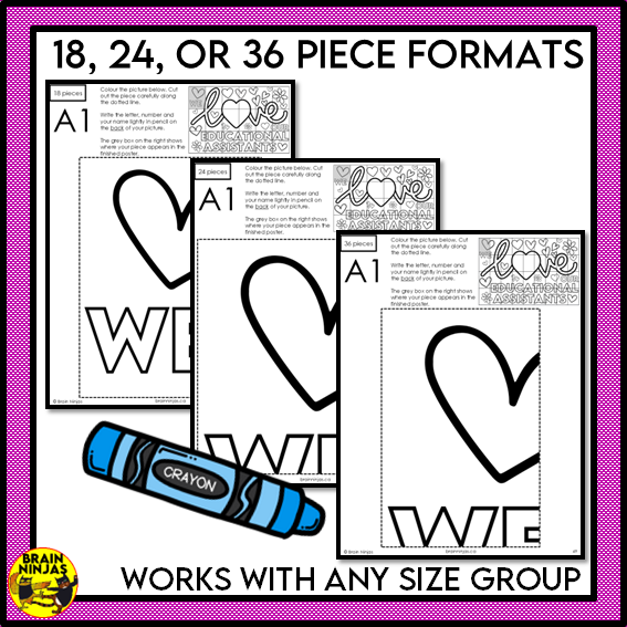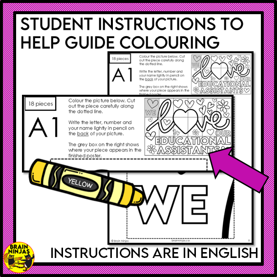 Use this collaborative poster with students in your school to show appreciation to the educational assistants in your school all year long. This colouring activity takes students 10-30 minutes and just requires printing for you to use right away.