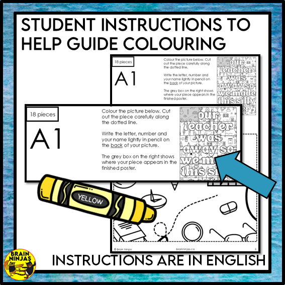 Use this collaborative poster with your class to start your day when you are subbing or have a substitute teacher on the way. This colouring activity takes students 10-30 minutes to complete. Just print and use it.