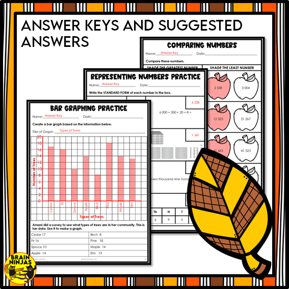 Fall Math Worksheets Numbers up to 10 000 | Paper