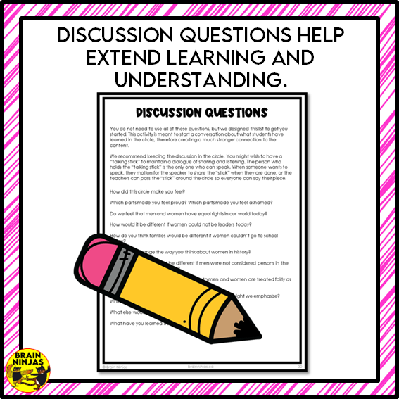 - any lesson about historic women, the women's movement in Canada, Women's History Month or International Women's Day.