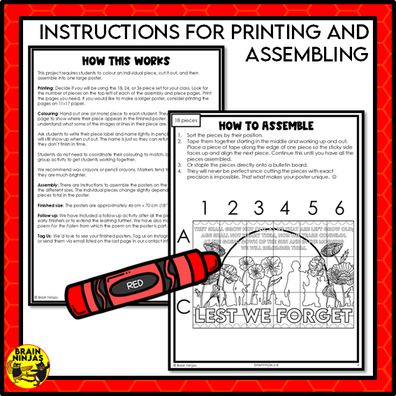 Use this collaborative poster with your class to start conversations about Remembrance Day on November 11 based on the poem For the Fallen. This colouring activity takes students 10-30 minutes and just requires printing for you to use right away.