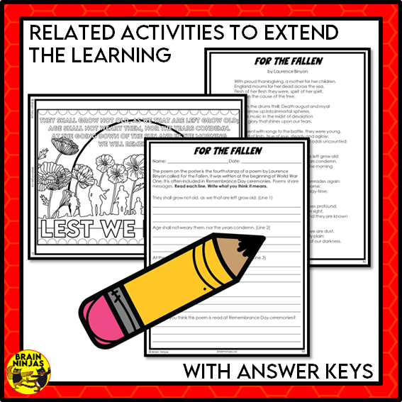 - follow-up activities to extend learning or keep your early finishers busy. Learn about the poem For the Fallen by Laurence Binyon at the start of World War 1.