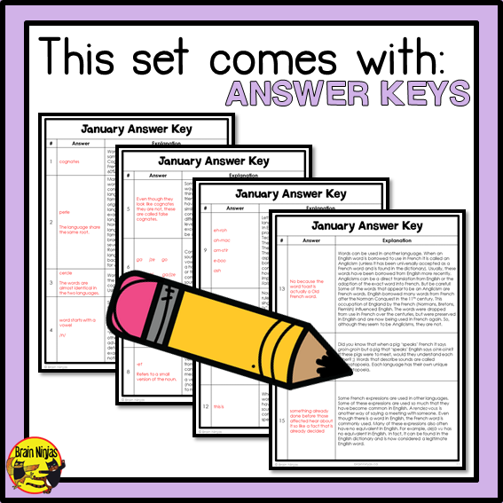 Explore French and learn about some of the reasons it works the way it does with this fun and engaging set of fifteen quick bell ringer activities. Use them to start each French class. No prep is needed and you can even leave these activities with your non-French-speaking substitute teacher.