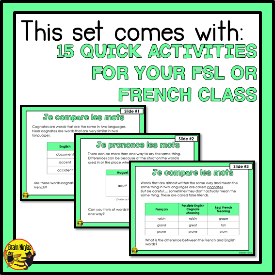 - 15 Google Slides with simple activities to help your students learn about the French language through fun and interesting facts. Each of the 15 activities is designed to be completed in about 5 minutes over 15 different days.