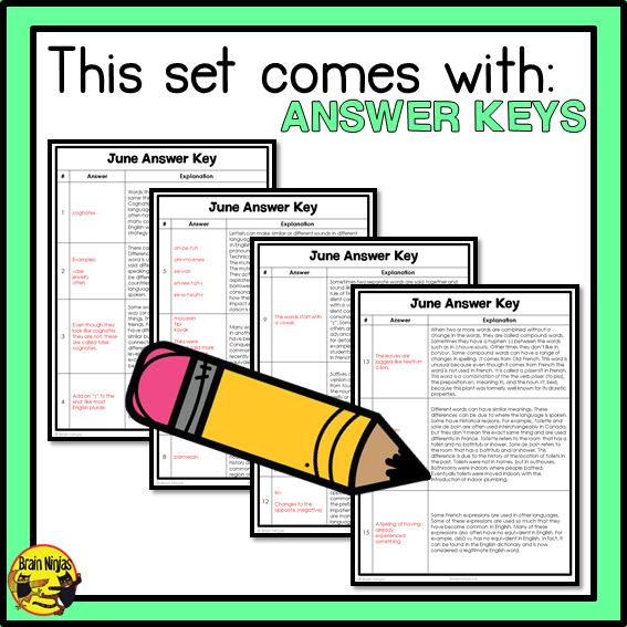 Explore French and learn about some of the reasons it works the way it does with this fun and engaging set of fifteen quick bell ringer activities. Use them to start each French class. No prep is needed and you can even leave these activities with your non-French-speaking substitute teacher.