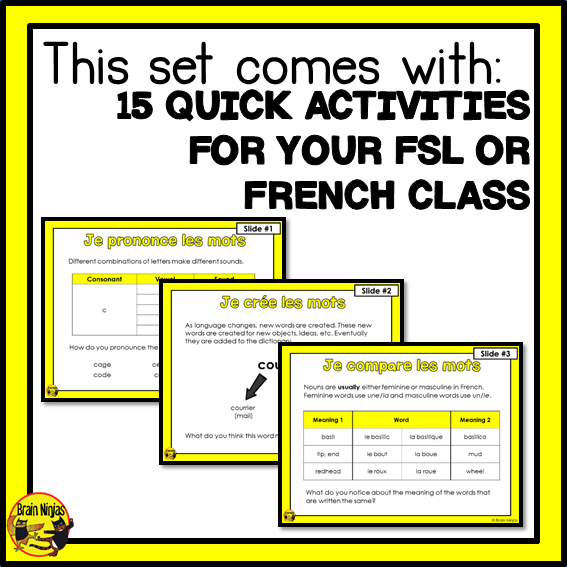 - 15 Google Slides with simple activities to help your students learn about the French language through fun and interesting facts. Each of the 15 activities is designed to be completed in about 5 minutes over 15 different days.