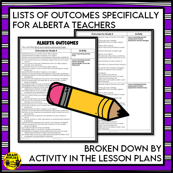 - an alignment guide for Alberta Outcomes listed by each activity in the lesson plan.
