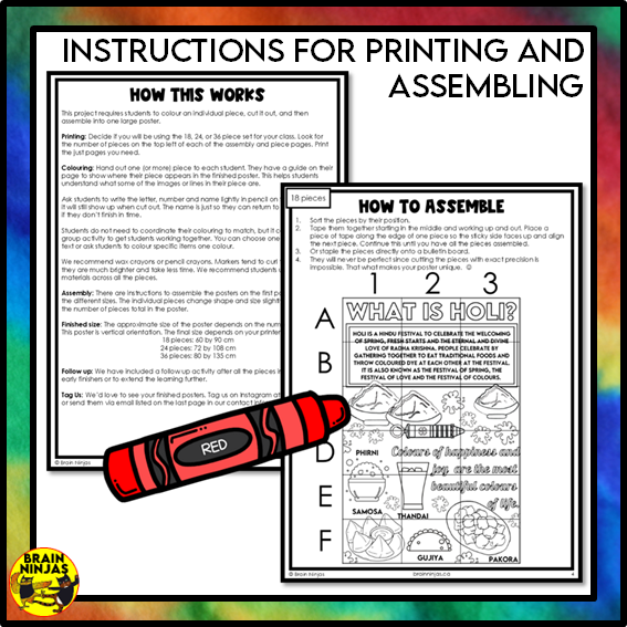 Use this collaborative poster with your class to start celebrations for the Holi Festival of Colours with this collaborative poster. This colouring activity takes students 10-30 minutes. Just print and use!