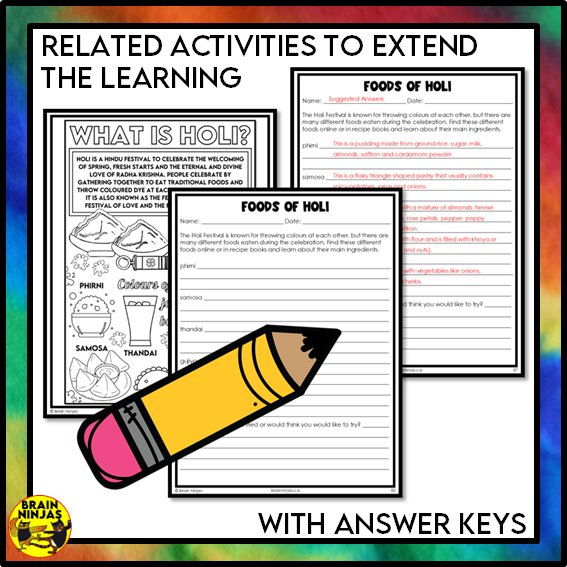 - follow-up activities to extend learning about some of the different foods eaten during Holi.
