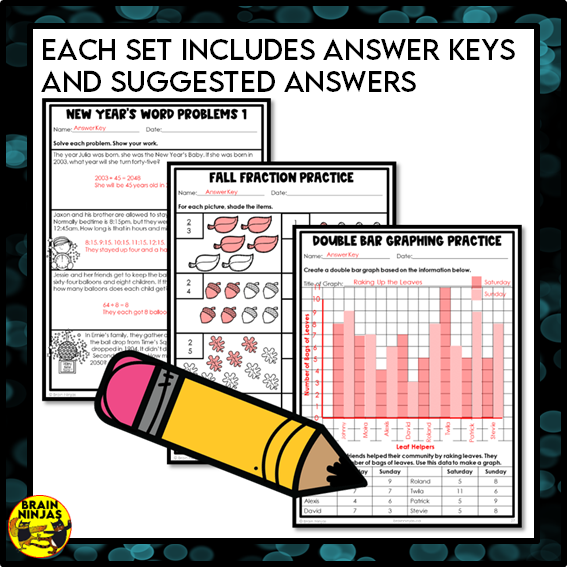 - any future sets of worksheets for Grade 5 that we create. Buyers receive an email informing them of any new sets so they can download them.