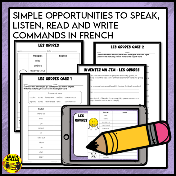 - a complete lesson plan that includes reading, writing, listening and speaking activities written in English to practice pronouncing French commands. Instructions for how to modify the lessons are included in the plan.