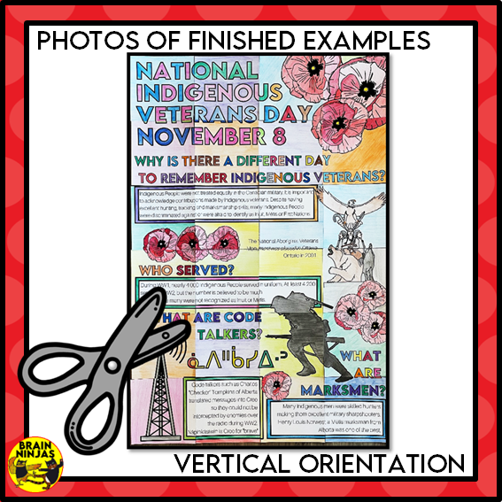 - a collaborative poster you can use for Indigenous Veterans Day or Remembrance Day in Canada. The poster is about service, marksmen, code talkers and monuments and is written for elementary students.