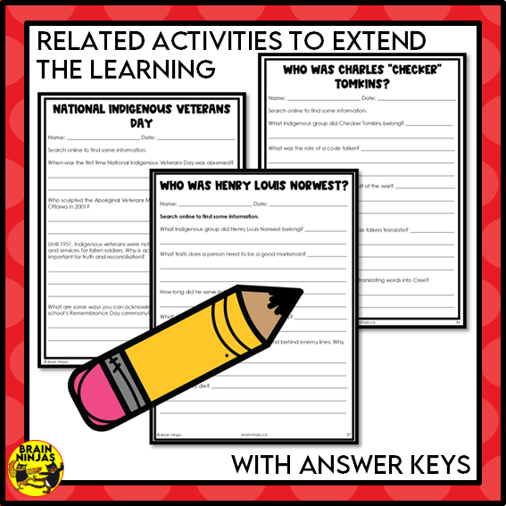 - follow-up activities to extend learning about the origins of Indigenous Veterans Day on November 8, Charles "Checker" Tomkins and Henry Louis Norwest.