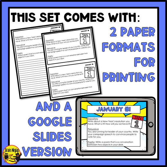 Help your students build writing stamina and fluency by giving them a variety of choices for writing in January. A variety of formats make it easy to prepare and use these writing prompts whether you are teaching in-person or in your online classroom.