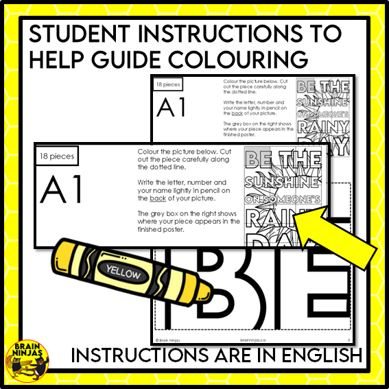 Use this collaborative poster with your class to get students to learn to work together for a common goal. This colouring activity takes students 10-30 minutes. Just print and it's ready to use.