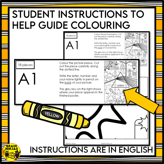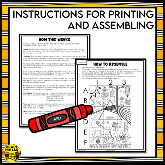 Use this collaborative poster with your class to kick off lessons about light with this collaborative poster about sources of light. This colouring activity takes students 10-30 minutes and it's ready to use as soon as you print.