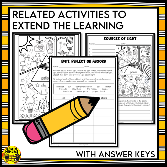 - follow-up activities to extend learning about sources of light and which objects emit, reflect or absorb light.