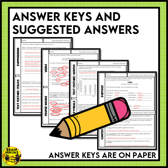 - Answer Keys and Suggested Responses: Streamline marking and eliminate the guessing about how students should answer questions.