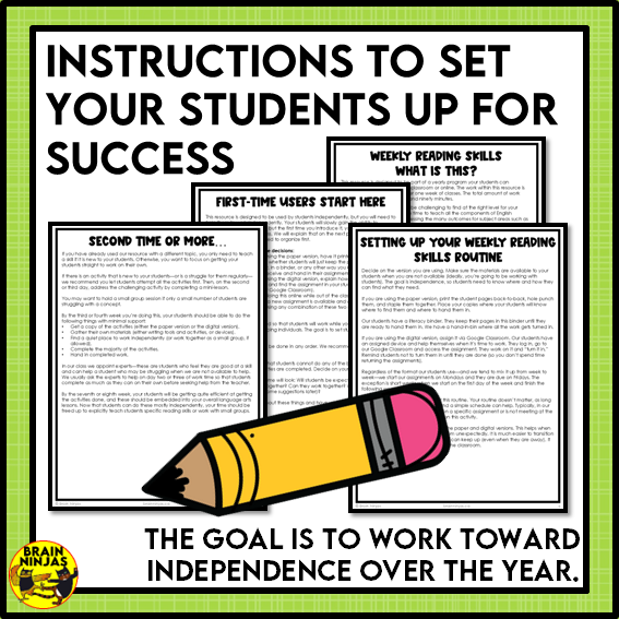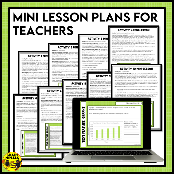 - Quick Mini-Lessons: A lesson for each skill is included to save prep time. These lessons are designed to teach all the skills in this resource without any extra prep or materials. Most lessons take less than ten minutes.