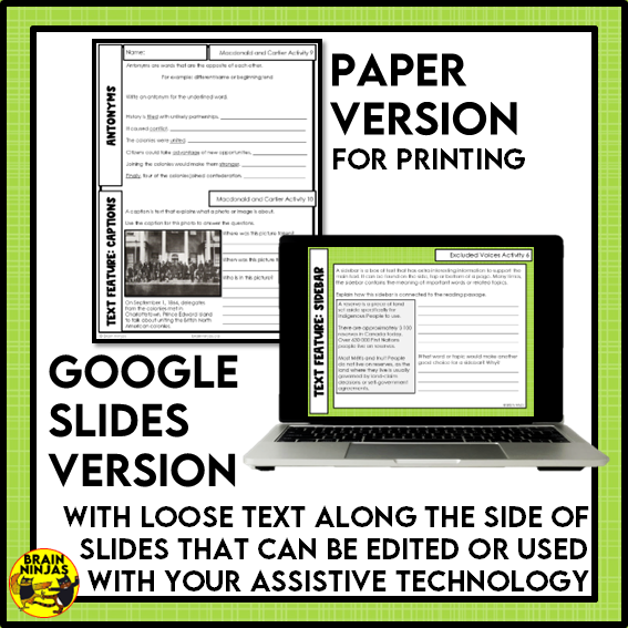- Google Slides Version: Fully digital for tech-friendly classrooms, with detailed troubleshooting support included. The slides include loose text that can be read by your assistive technology (but can easily be moved) for students who need independent support.