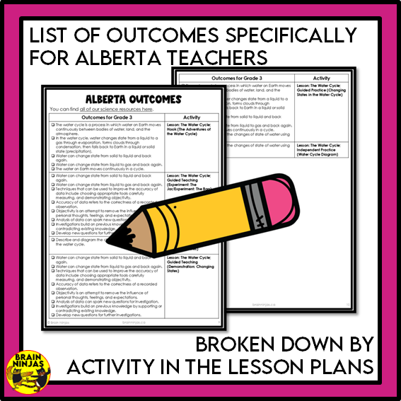 - a unit plan and a list of Alberta Science outcomes to help with planning.