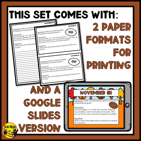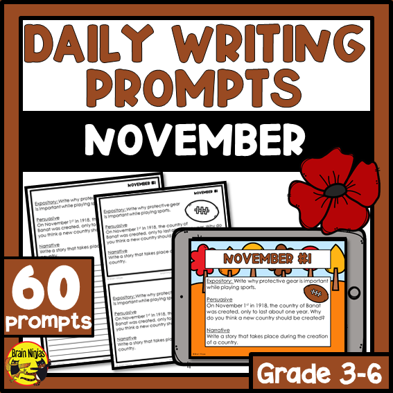 Help your students build writing stamina and fluency by giving them a variety of choices for writing in November. A variety of formats make it easy to prepare and use these writing prompts whether you are teaching in-person or in your online classroom.