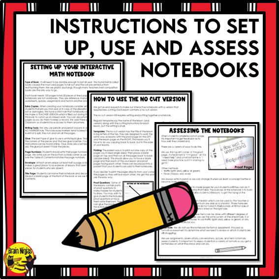 - instructions for how to set up, assess, and use interactive notebooks. It has a version that doesn’t require cutting and gluing if you’re worried about time or fine motor skills.