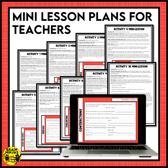- Quick Mini-Lessons: A lesson for each skill is included to save prep time. These lessons are designed to teach all the skills in this resource without any extra prep or materials. Most lessons take less than ten minutes.