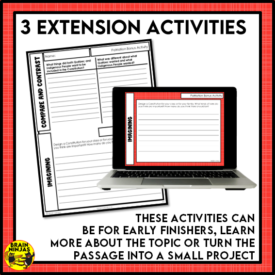 Patriation of the Canadian Constitution Reading Comprehension Activities | Paper and Digital