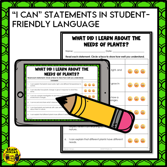 - "I can" statements in student-friendly language and format for students to self-assess their learning.