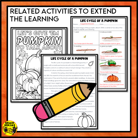 - follow-up activities to extend learning about the life cycle of a pumpkin.