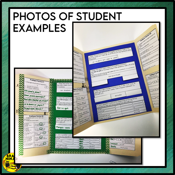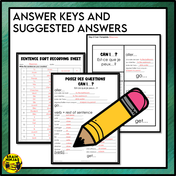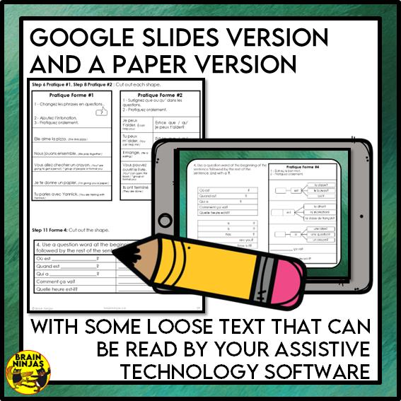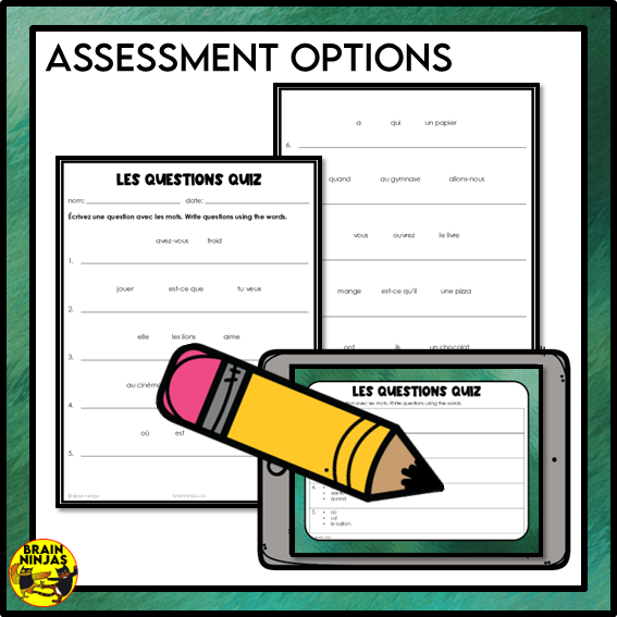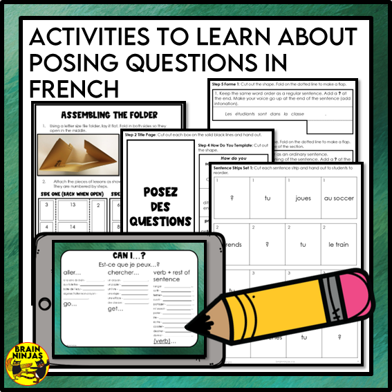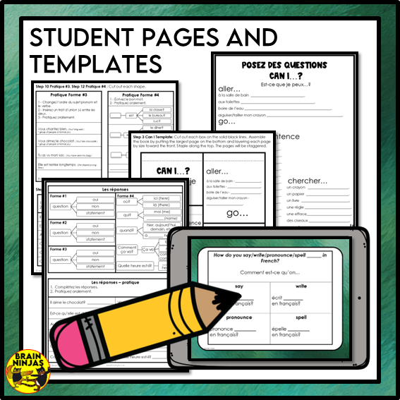 - background information about French and how to explain the use and context of questions to students for non-native French speakers or teachers who are new to teaching French. This is helpful since the question formats are different than in English.