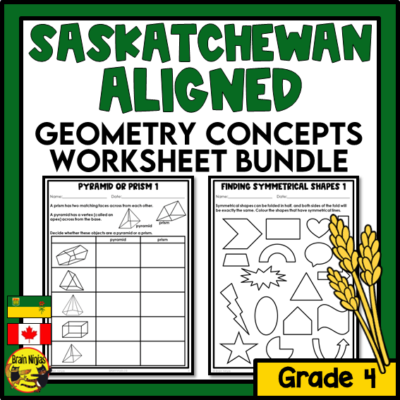 Saskatchewan Aligned Geometry Math Worksheets Bundle | Paper | Grade 4