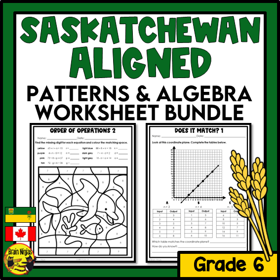 Practice or assess Saskatchewan Grade 6 patterns and algebra concepts with these math worksheets. Use them for practice, review, or assessment. They only take moments to prep and make differentiation easy peasy.
