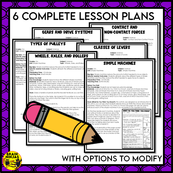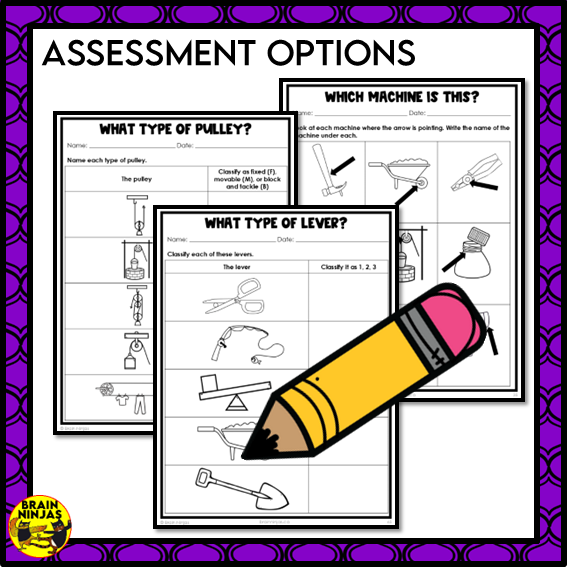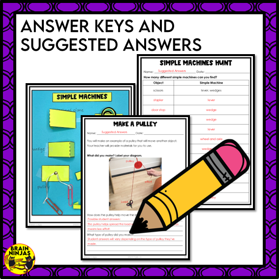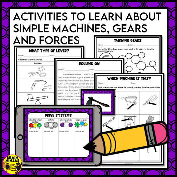 Teach background knowledge on levers, pulleys, inclined planes, screws, wedges, wheels, and axles with these ready-to-print activities. Everything you need to teach the basics of simple machines is included and you'll be teaching with just a few moments of prep.